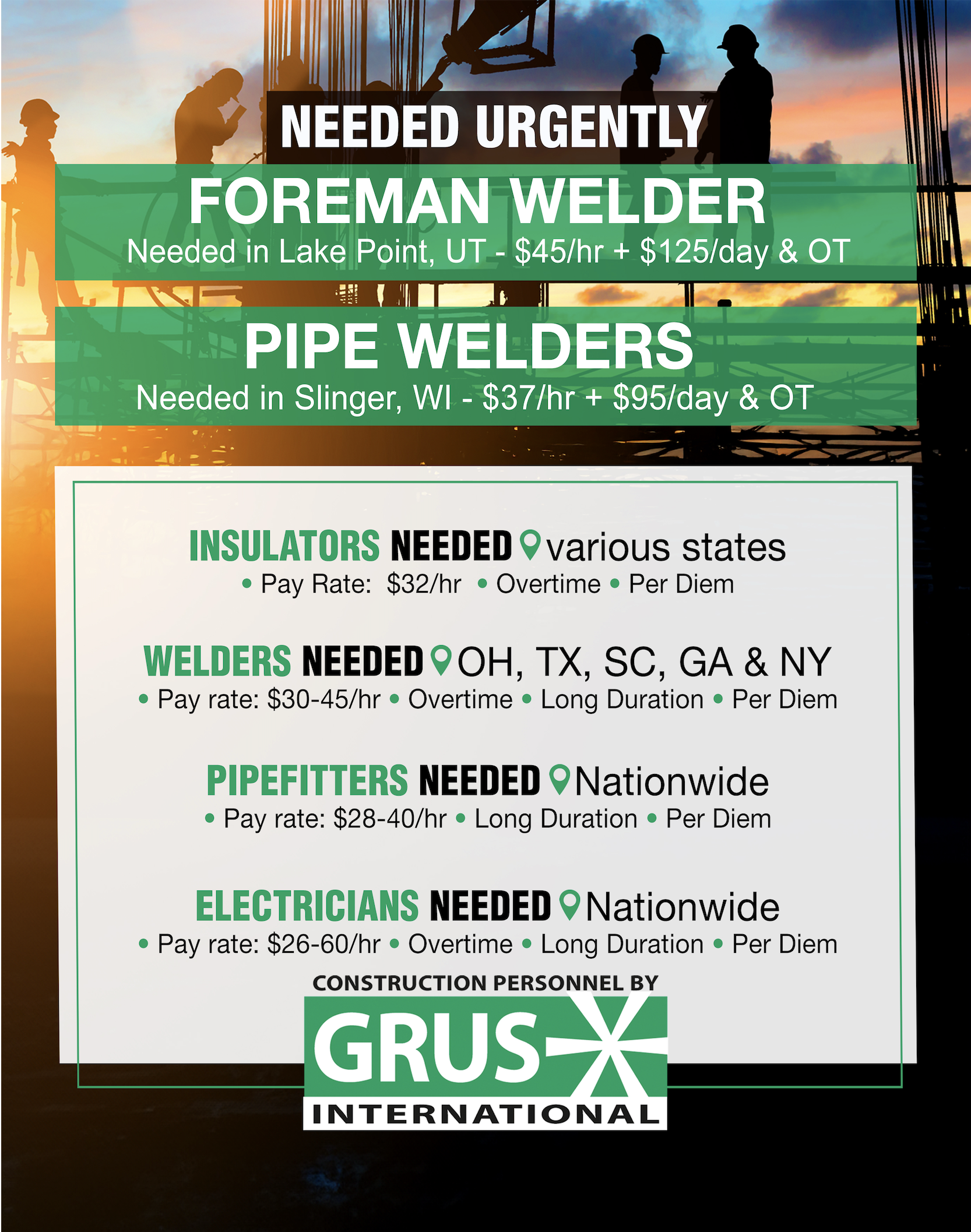 Data Centers SEEKING LEAD ELECTRICIANS IN THE SOUTH ASAP!!! Trillium Georgia PAY: 45-48 PER DIEM: HOTEL + 50/DAY ALL 7