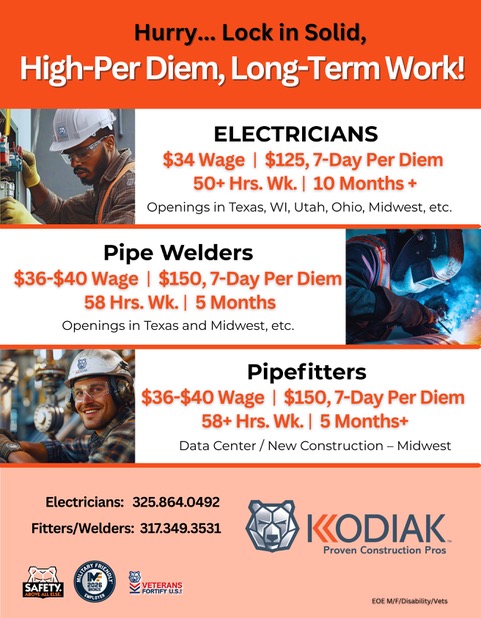 No-Temp to Perm-No Per Diem. Seeking Local Fitters and welders only.